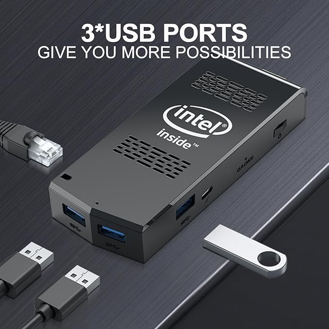 - 【EXCELLENT NETWORK】This HDMI stick pc equipped with 2.4G&5G Dual-band WIFI, Bluetooth 4.2, and a gigabit network port, which combines wireless and wired applications to keep you online all the time. Size: 5.5*1.9*0.78 Inches, Weight: 0.26 Pounds, you can easily slip it into your pocket or travel bag.